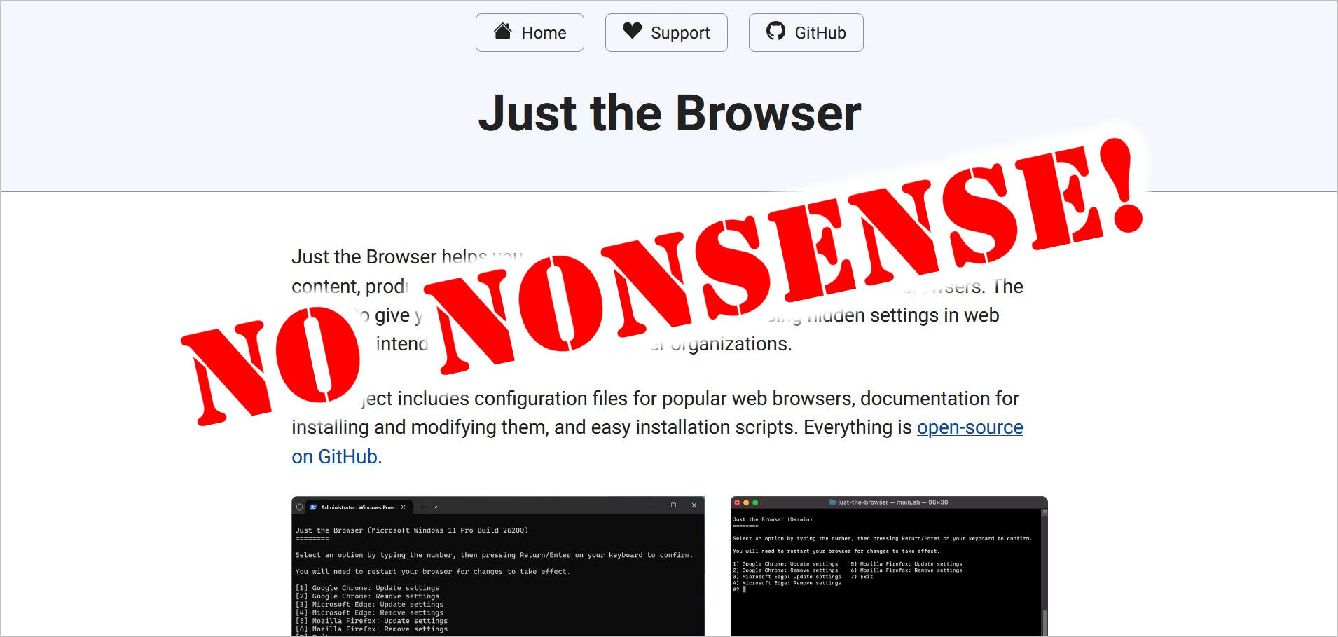 You know that “AI kill switch” that Firefox will eventually add? It’s already a hidden setting that Just the Browser can enable for you. It will also turn off all Gemini and AI Mode features in Chrome. In Microsoft Edge, it turns off all Copilot features, advertisements for Adobe Reader, articles and ads on the New Tab page, automatic data import from other browsers, and much more.