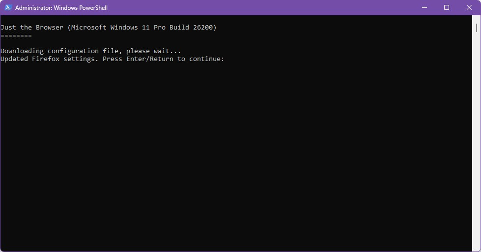 & ([scriptblock]::Create((irm “https://raw.githubusercontent.com/corbindavenport/just-the-browser/main/main.ps1”)))